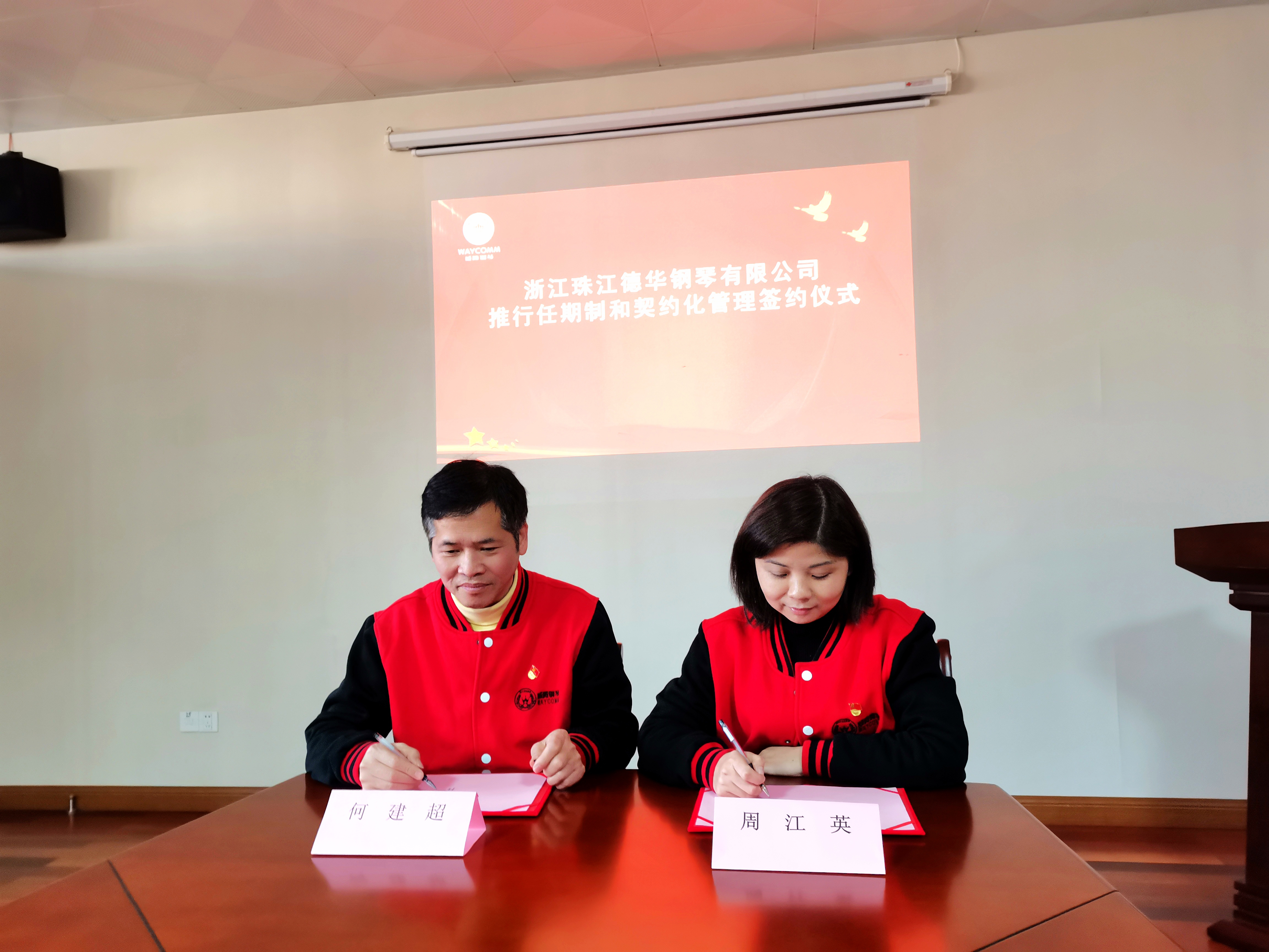 推行經(jīng)理層任期制和契約化管理是落實國企改革三年行動的重要抓手,是激發(fā)企業(yè)內(nèi)生活力的關鍵舉措,是實現(xiàn)國有企業(yè)高質(zhì)量發(fā)展的必然要求。根據(jù)市國資委《關于市管企業(yè)所屬企業(yè)推行經(jīng)理層任期制和契約化管理有關工作的通知》等文件精神,結合集團“十四五”發(fā)展規(guī)劃,2021年12月22日,浙江珠江德華鋼琴有限公司舉行企業(yè)經(jīng)理層任期制和契約化管理簽約儀式,在切實推動國企改革三年行動和三項制度改革工作。