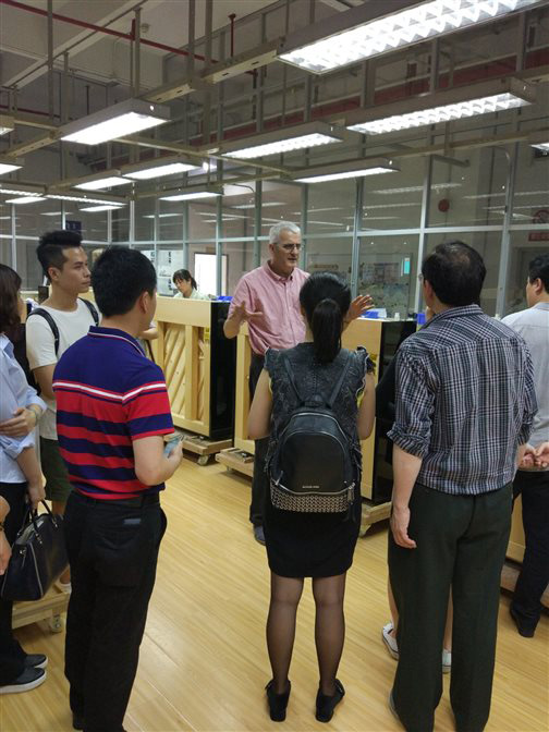 下午,經銷商直奔增城國家文化產業(yè)示范基地。在增城廠區(qū),他們參觀了6層樓高占地約20畝的鋼琴生產大樓。威騰鋼琴董事長馮漢輝全程陪同,并逐層介紹,先后參觀了外殼組件車間、共鳴盤生產流水線、鋼琴總裝流水線、 擊弦機生產車間、凱撒堡KA廠等,了解各區(qū)域功能布局,觀察工人的生產操作過程。經銷商們饒有興趣地詢問有關生產流程及部件質量的監(jiān)控情況等,零距離了解珠江鋼琴集團技術研發(fā)、質量保證等能力。